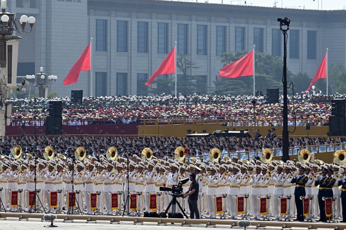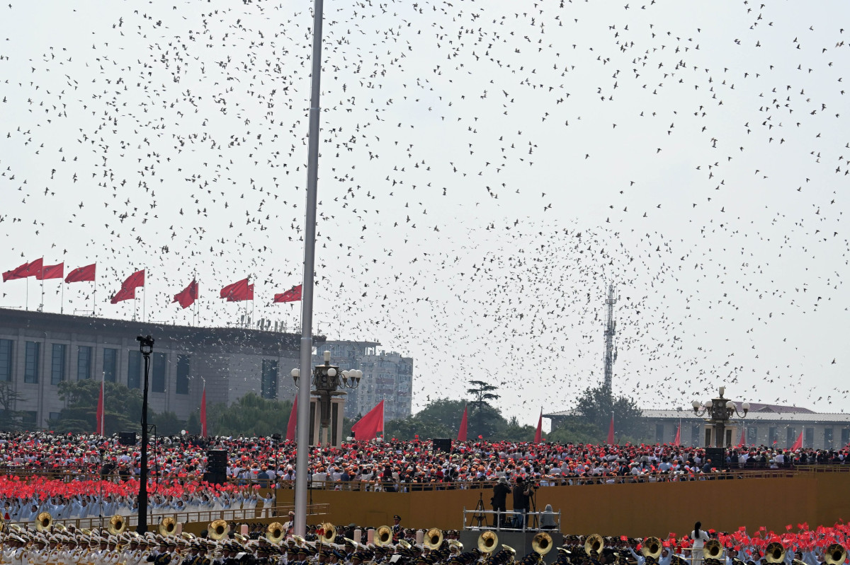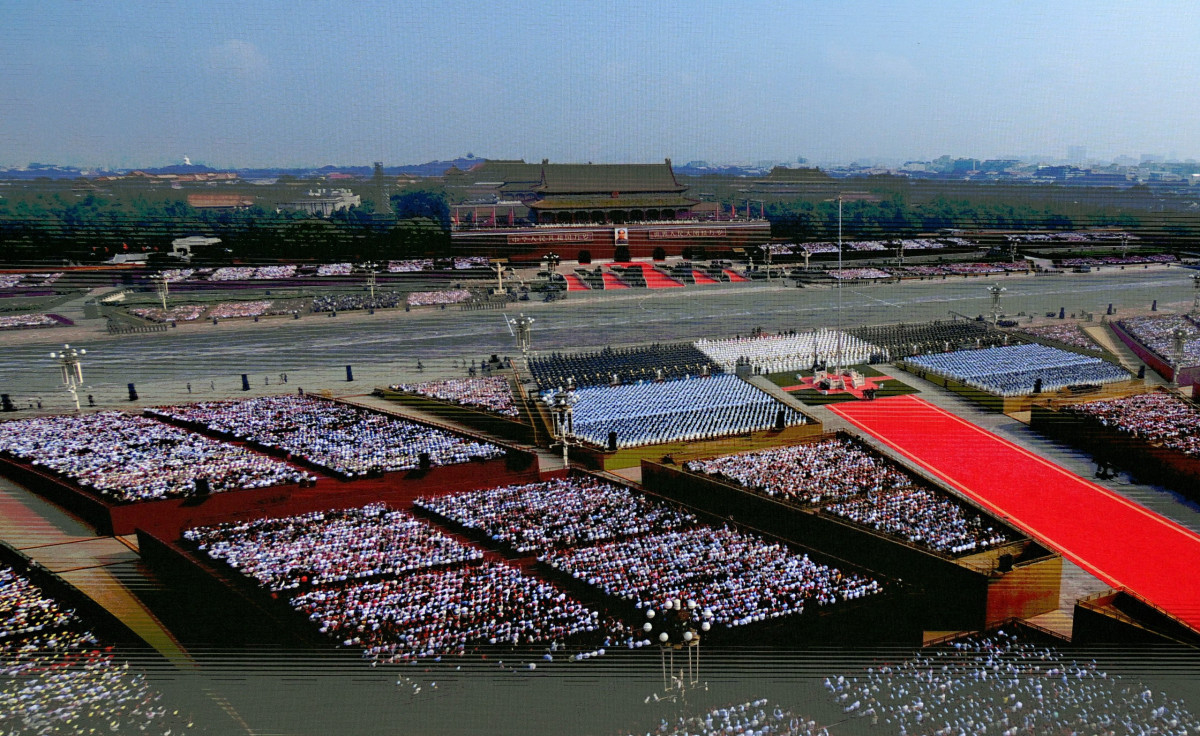 Андан соң лидерлер Тяньаньмэнь аянтындагы парадга катышуу үчүн байкоо аянтчасына жөнөштү.