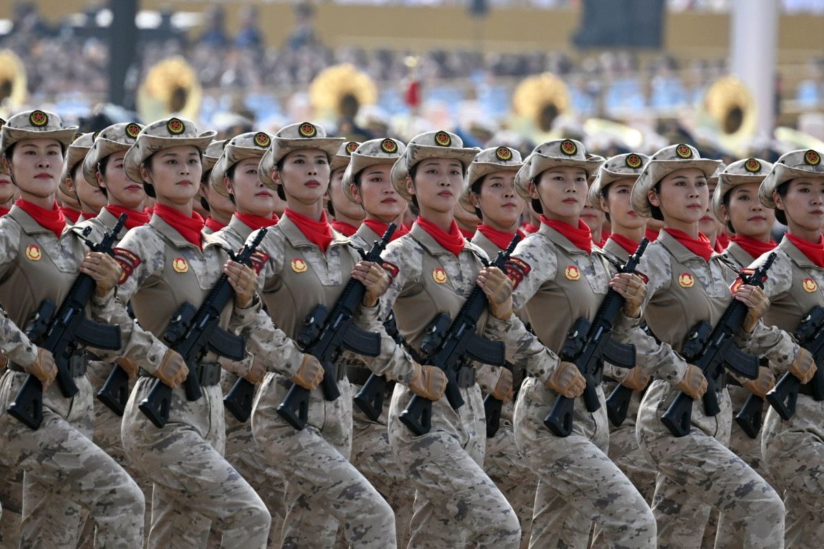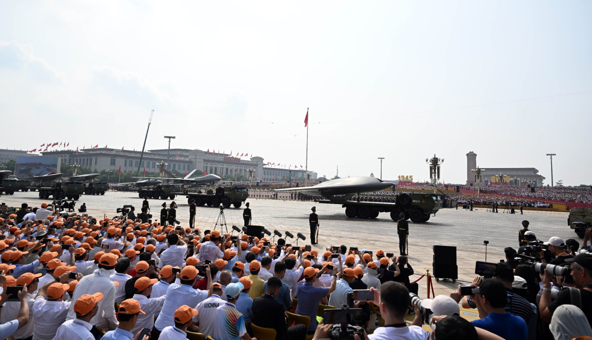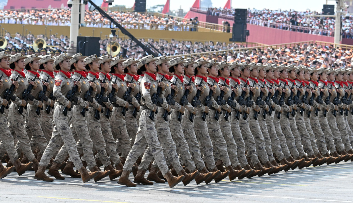 Салтанаттуу жүрүштүн башында мамлекеттик тууларды көтөргөн аба эшелондору учуп өттү. Андан кийин жөө аскерлердин параддык бөлүктөрү, аскердик желектерди алып жүргөн бөлүктөр жана Кытайдын аскердик техникаларынын колонналары өтүштү. Парадды аскердик учактардын эскадрильясынын учуусу аяктады.