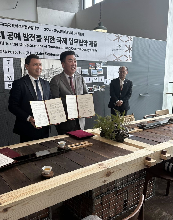Кечээ, 4-сентябрда маданият министри Мирбек Мамбеталиев Чхонджу шаарынын мэри Ли Бом Сок менен салттуу кол өнөрчүлүк жаатында өз ара түшүнүшүү жөнүндө меморандумга кол койду. Бул тууралуу министрликтин басма сөз кызматы билдирди.
