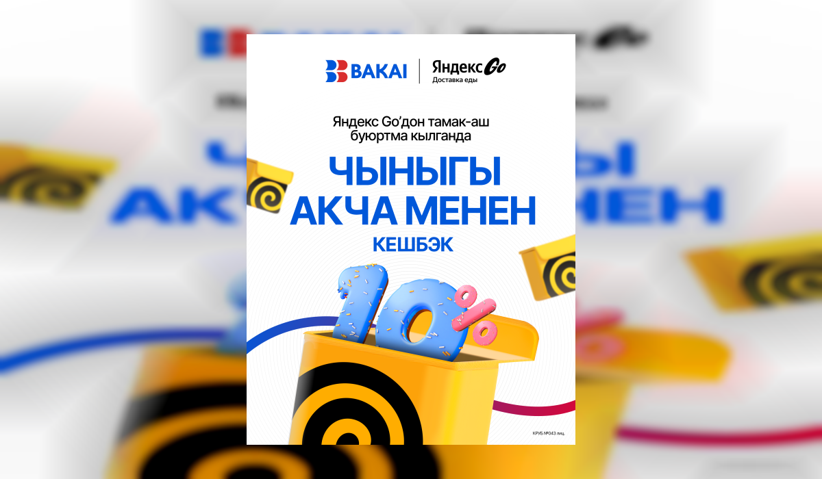 Эми сүйүктүү тамактарыңыз мурдагыдан да даамдуу жана пайдалуу болот. 2025-жылдын 1-сентябрынан 30-ноябрына чейин BAKAI’дын Visa карталарынын ээлери “Яндекс Еда” сервисинен буюртма бергенде 10% өлчөмүндө чыныгы акча менен кешбэк ала алышат.