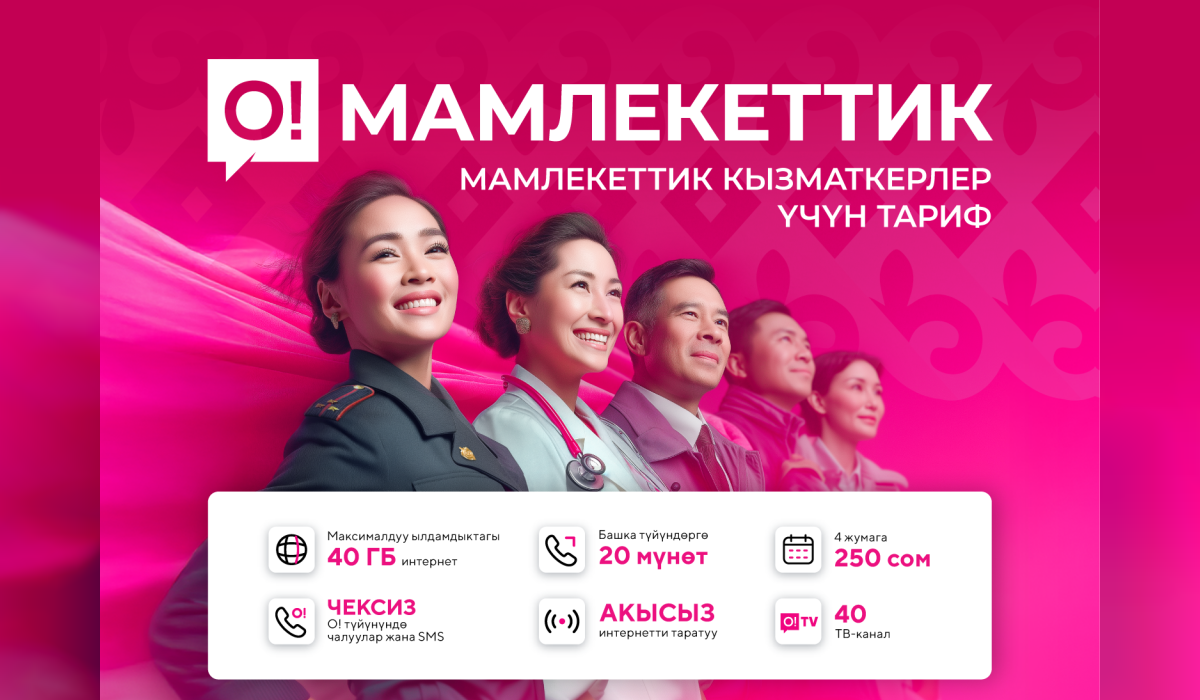 Эми мамлекеттик кызматкерлердин баары «О!Мамлекеттик» атайын тарифин кошуп алса болот. Тарифтин алкагында 4 жумага 250 сом менен төмөнкүлөр жеткиликтүү: