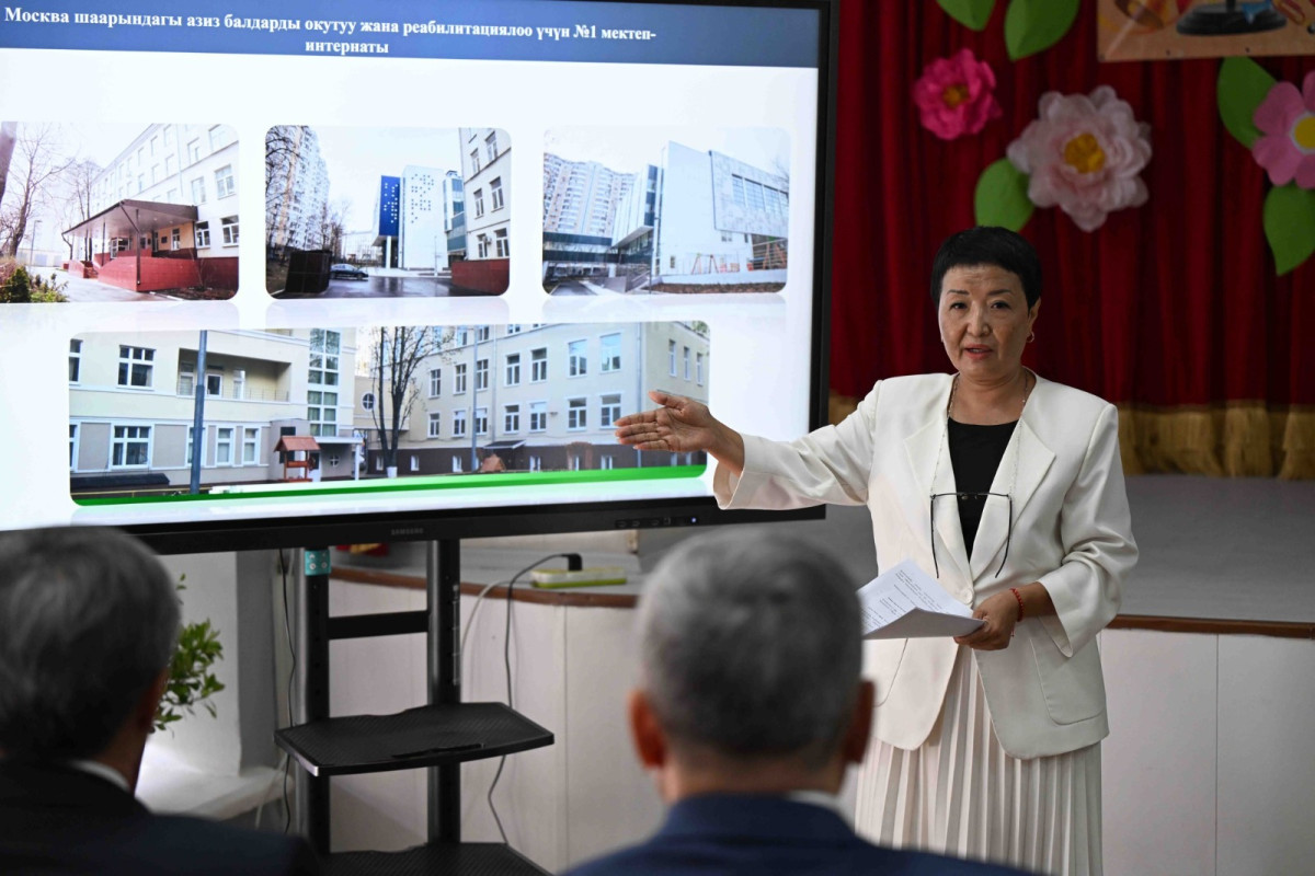 Бүгүн, 8-сентябрда министрлер кабинетинин төрагасы Адылбек Касымалиев Бишкек шаарындагы азиз жана көрүүсү начар балдар үчүн атайын жалпы билим берүүчү жатак мектепке барды. Бул тууралуу Агартуу министрлиги кабарлады.