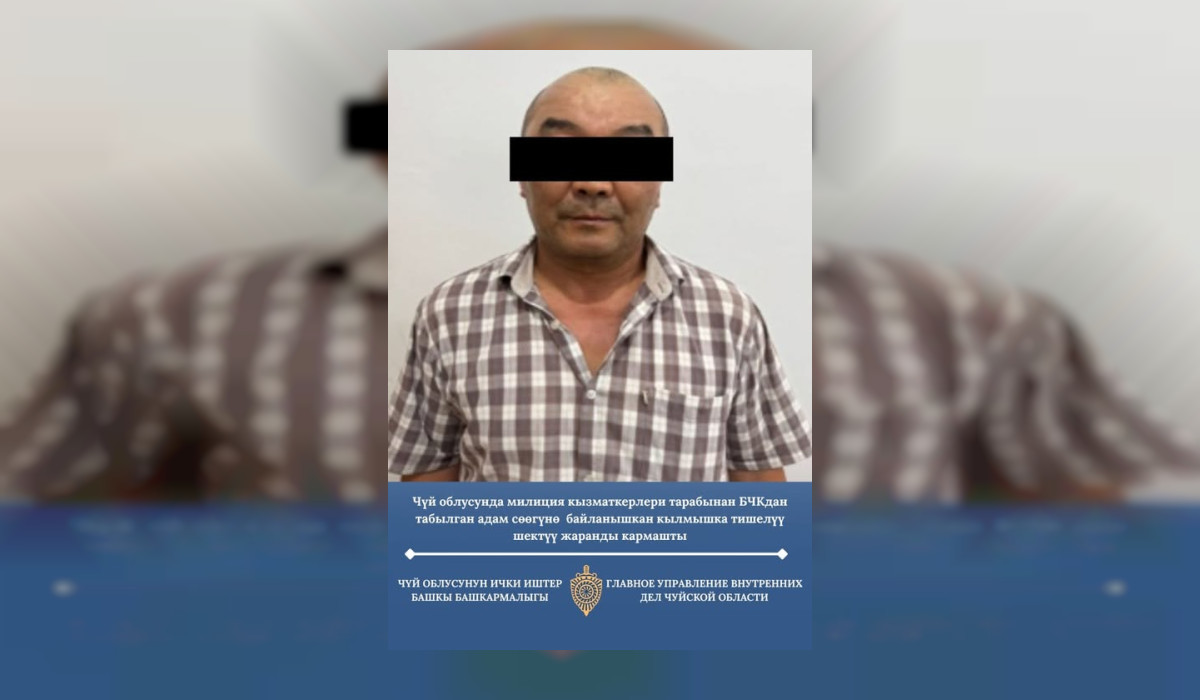 Чүйдө адам өлтүрүүгө шектелген жаран камакка алынды. Бул тууралуу облустук милиция билдирди.