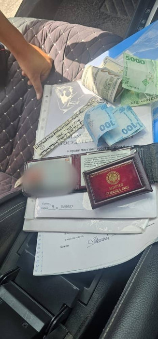 Алдын ала алынган маалымат боюнча, 2024-жылдын ноябрь айынын аягында Жибек-Жолу аймактык башкармалыгынын башчысы М.М. жана жер адиси З.М. арыздануучунун соода дүкөнүнүн буздурбоо үчүн документтерди жасап берүүнү көздөп 17 миң сом акча каражатын алышкан.