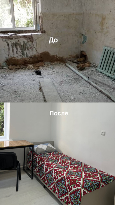 "Буга чейин ажатканасы менен ашканасы сыртта жайгашкан болсо, эми оңдоодон кийин жатаканын ичинен орун алып, студенттердин жашоосуна ыңгайлуу болуп калды.