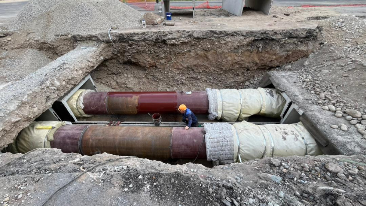 Бүгүнкү күндө түтүктөрдү алмаштыруу иштери аяктады. Жылуулук камераларына түтүктөрдү кошуу, кайра толтуруу жана жолдун үстүнө асфальт төшөө үчүн жолдун бөлүгүн даярдоо иштери жүрүп жатат.