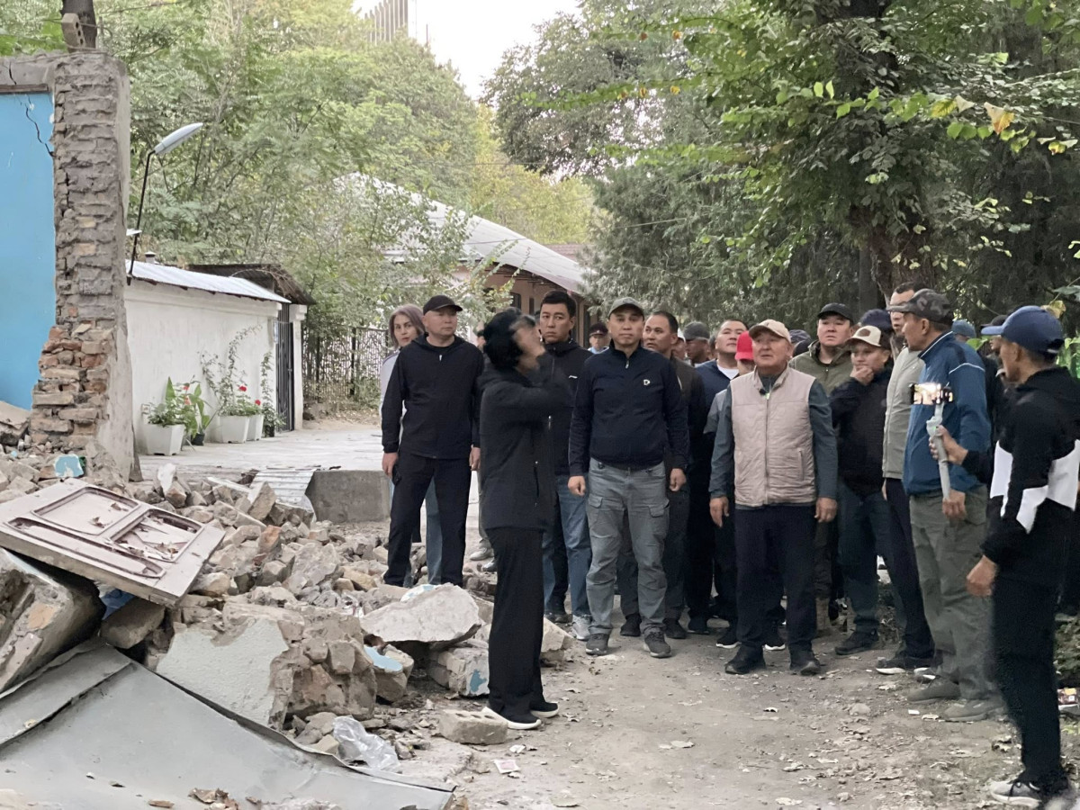 Калаа башчысы түрттүрүлүп жаткан имарттарды текшерип жатып мурунку Жогорку Кеңештин депутаты, азыркы Германиядагы Кыргызстандын элчиси Өмүрбек Текебаевдин имараты да буздурулганын белгилеп өттү. Тийиштүү кызматтарга ишемби күнү толук тазалап кетүү тапшырмасын берип, ал жерде ишембилик өткөрүлө тургандыгын эскертти.