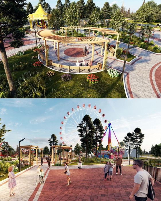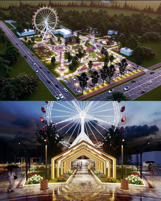Паркта эс алуучулар үчүн ыңгайлуу шарттар каралып, аттракциондордун онго жакын түрү коюлат. Жалпы курулуш аянты 1,5 гектар жерди түзөт.