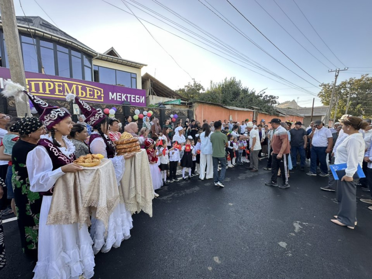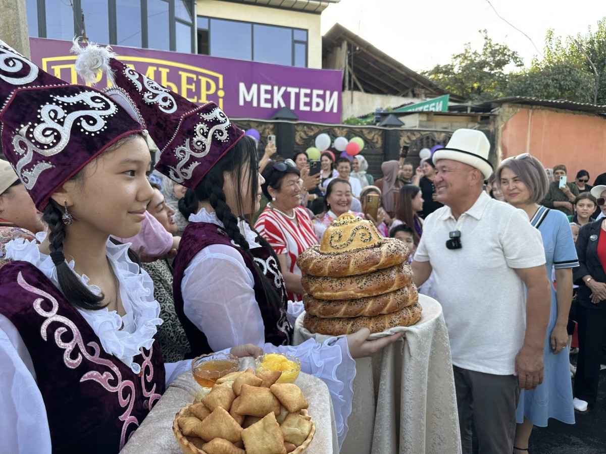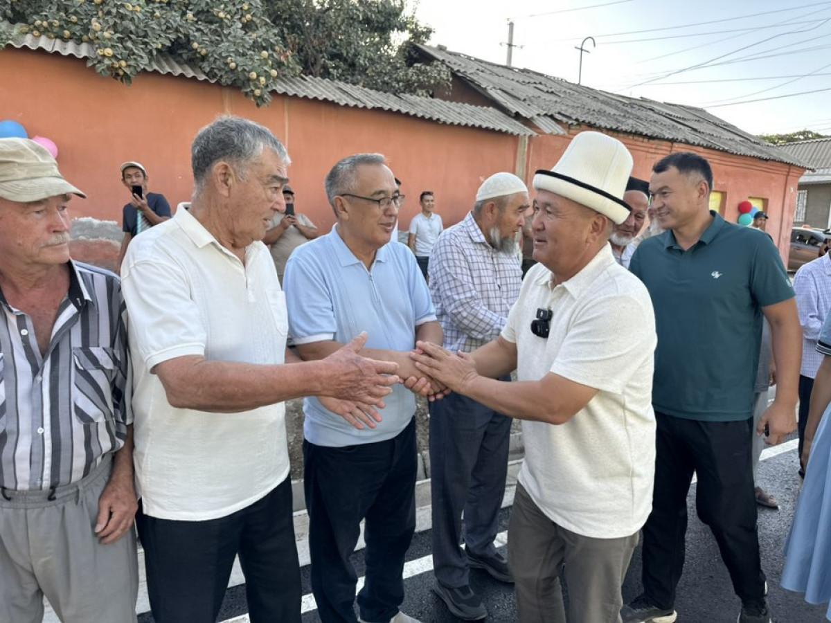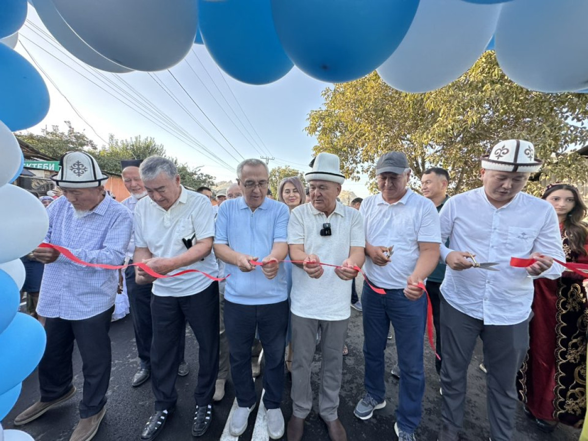 Мэр Жеңишбек Токторбаев жергиликтүү аксакалдар менен чогуу жолду ачып берди.
