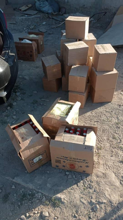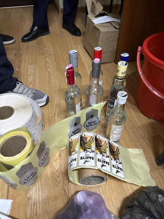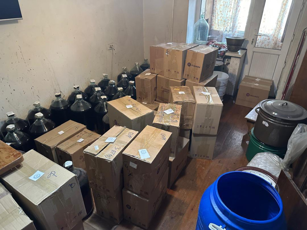 32 жаштагы кишинин үйүнөн 20 куту (ар биринде 36 стаканчиктеги арак), 7 куту (ар биринде 25 даана 0,7 литр бөтөлкөдөгү арак), эки аппарат, көптөгөн бош бөтөлкөлөр жана акциздик маркалардын ар кандай түрлөрү табылган.