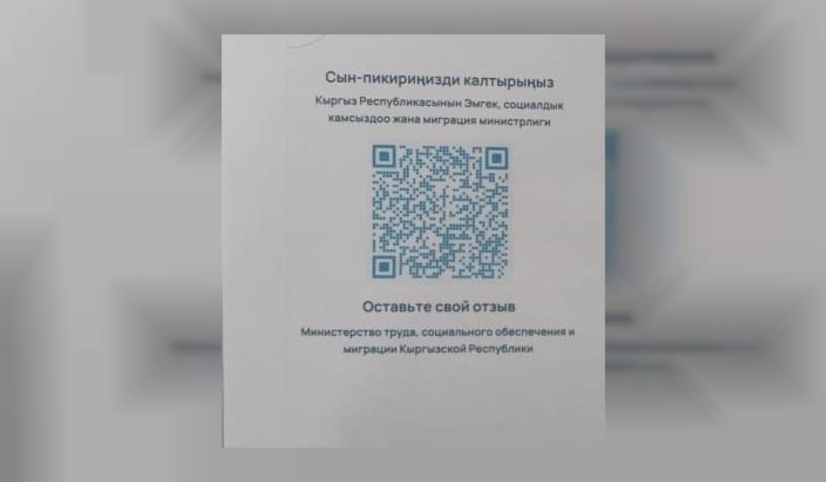 Эмгек, социалдык камсыздоо жана миграция министрлигинин жарандардын кайрылуулары менен иштөө процессинде ачык-айкындуулукту камсыздоо максатында, сын-пикирлерди чогултууда QR коду иштеп жатат. Бул тууралуу бүгүн, 15-сентябрда министрликтин маалымат кызматы билдирди.