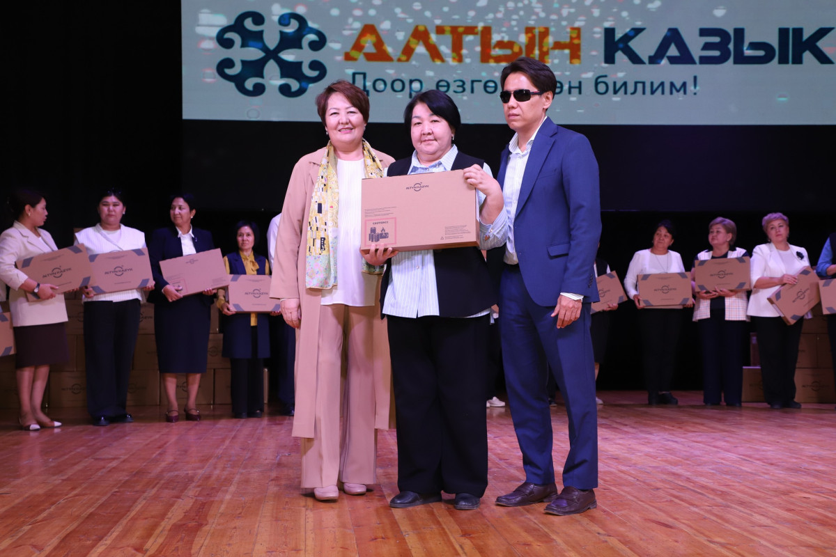 Кечээ, 17-сентябрда, Жогорку Кеңештин депутаты Дастан Бекешев жана агартуу министри Догдуркүл Кендирбаева Бишкек шаарындагы мектеп директорлорунун окуу-тарбия иштери боюнча орун басарларына "Алтын Казык" ноутбуктарын тапшырышты. Бул тууралуу Агартуу министрлигинен билдиришти.
