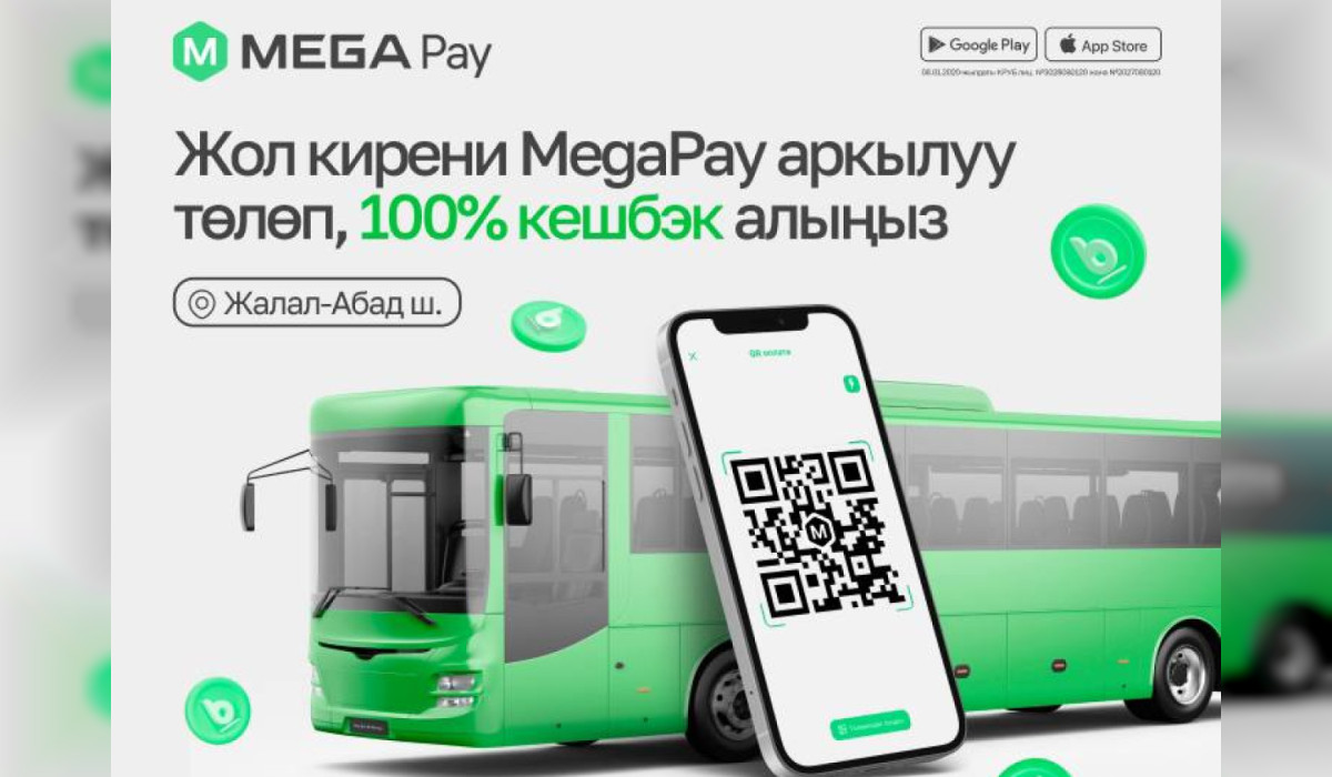 2025-жылдын 17-сентябрынан 2025-жылдын 17-октябрына чейин Жалал-Абад шаарынын тургундары жана коноктору үчүн шаардык автобустарда жүрүү максималдуу пайдалуу жана ыңгайлуу болот! MegaPay′ден болуп көрбөгөндөй акция!