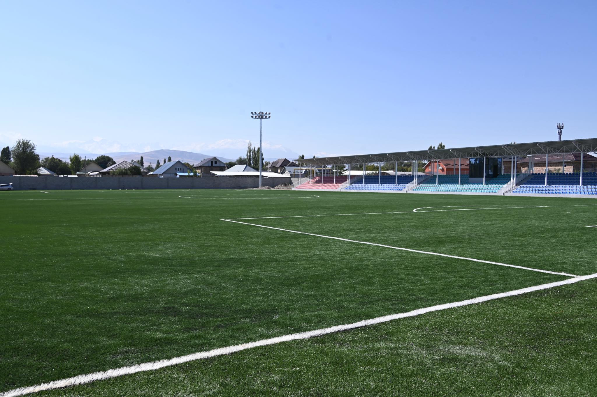 "Стадионду жаңылоо иштери 2024-жылы башталып, учурда 95 пайызга жакыны бүткөрүлдү. Жаңы спорт жайы заманбап талаптарга жооп берип, эл аралык стандарттардын негизинде курулууда. Долбоор боюнча стадион 2200 көрүүчүгө ылайыкталып, жалпы аянты 1,5 гектарды түзөт. Жакынкы күндөрү спорт сүйүүчүлөрү жаңы стадиондун эшигинен аттап, заманбап шартта оюн-зоокторго күбө боло алышат", - деп кошумчаланды маалыматта.
