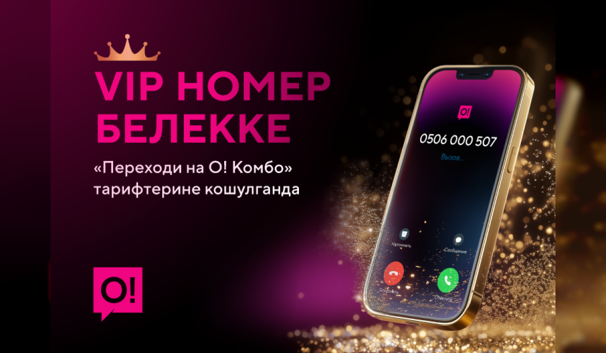 О! мобилдик оператору кооз, эске оңой сактала турган номерлерди тандоо мүмкүнчүлүгүн кеңейткен жаңы 506 кодун ишке киргизди. Эми «Переходи на О! Комбо» топтомуна кирген тарифтердин бирин алдын ала жарым жылга кошуп алганда, премиалдык номер белекке берилет!