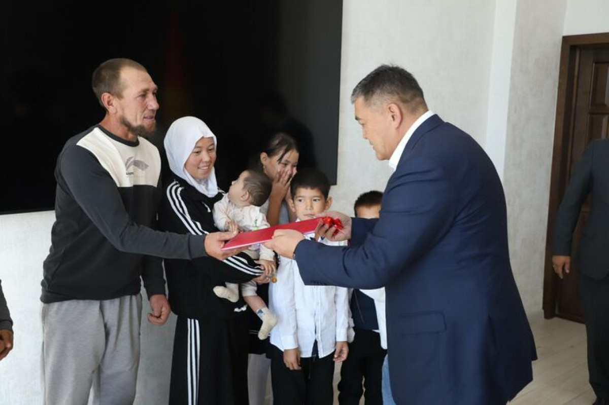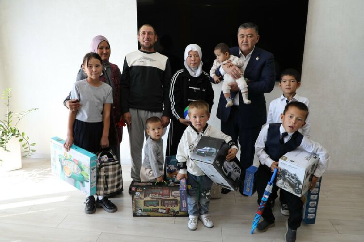 Бүгүн, 24-сентябрда УКМК төрагасы Камчыбек Ташиев он балалуу үй-бүлөгө үч бөлмөлүү үйдүн ачкычын тапшырды.
