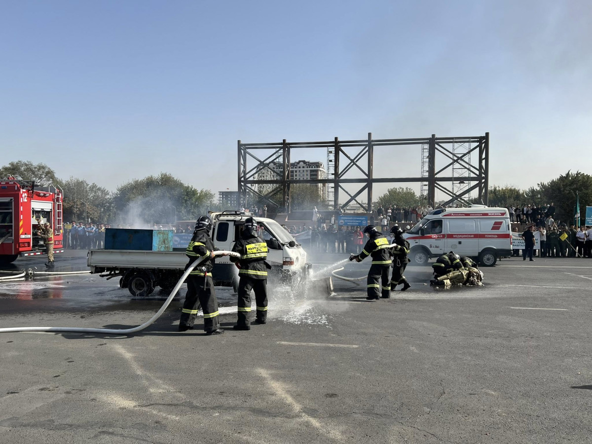 Иш-чаранын жүрүшүндө куткаруучулар табигый жана техногендик мүнөздөгү кырсыктар катталган учурда аткарылчу ыкмаларды көрсөтүшүп, борбордук аянттан ӨКМдин атайын техникалары өттү.