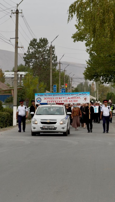 Бүгүн, 26-сентябрь күнү Кара-Кулжа районунда "Укук бузуулардын алдын алуунун негиздери жөнүндө" мыйзамдын талаптарына ылайык, зомбулуктун алдын алуу максатында "Зордук-зомбулукка каршыбыз! Туруктуу үй-бүлө" аталышындагы жөө жүрүш акциясы өткөрүлдү. Бул тууралуу Ош ОИИБи билдирди.