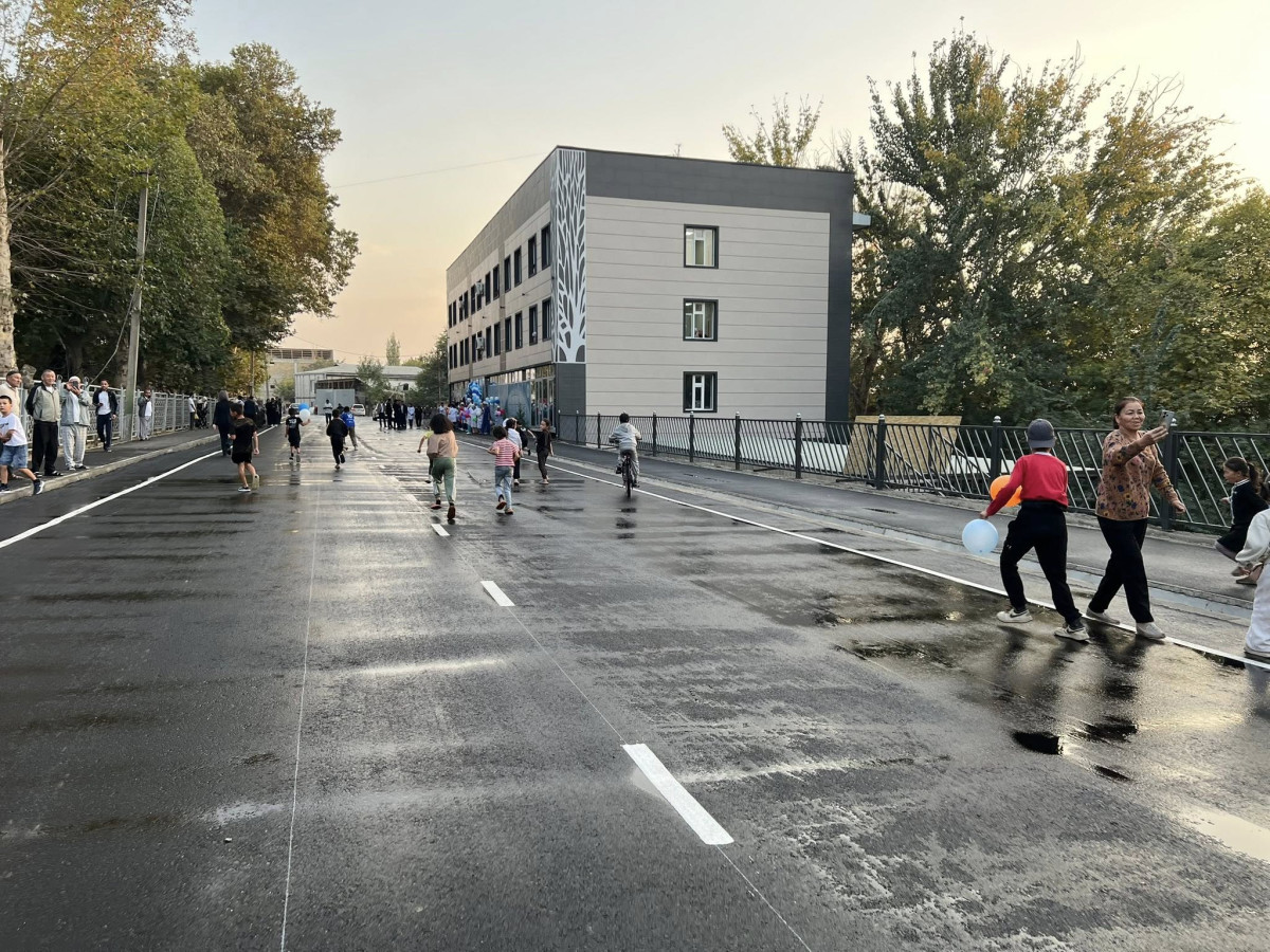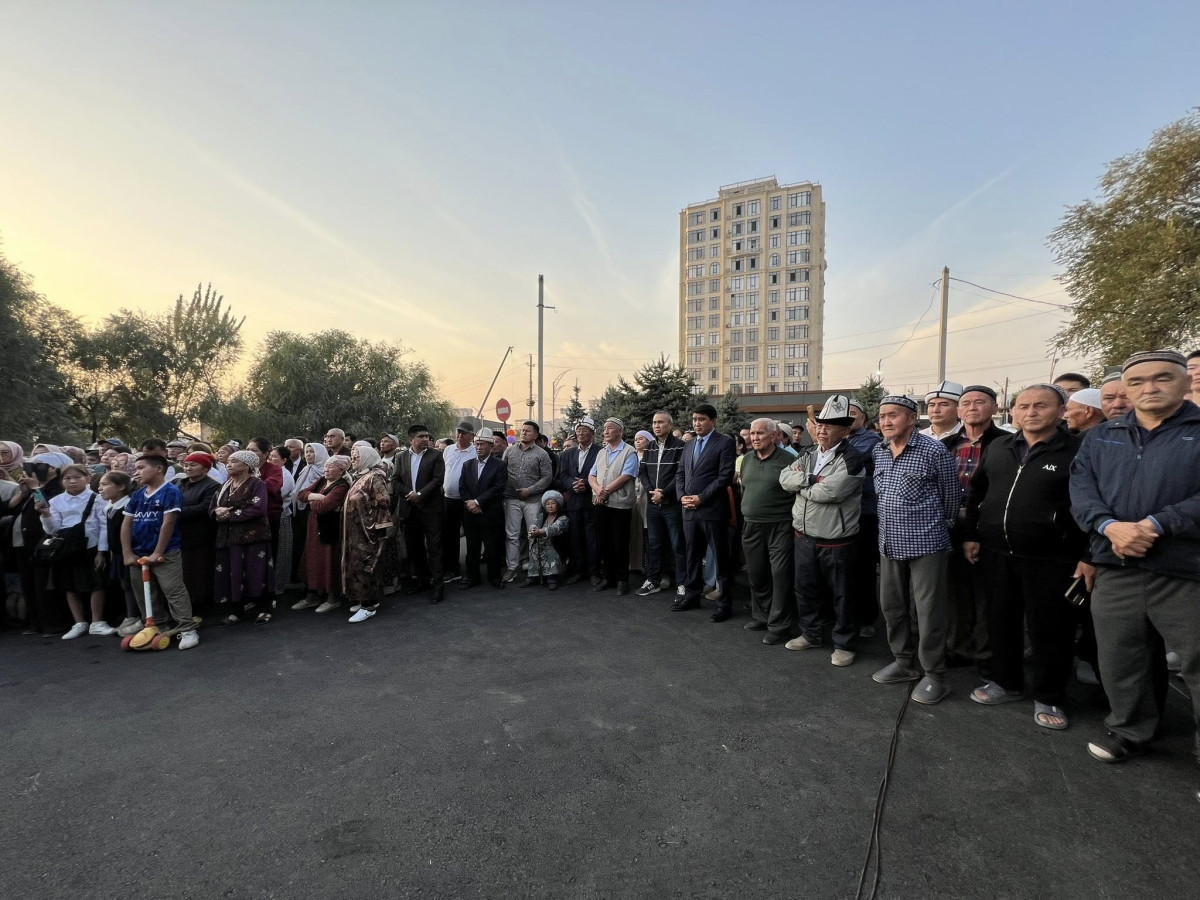 Маалым болгондой, ачылыш аземине шаар мэри Жеңишбек Токторбаев, шаардык кеңештин төрагасы Болот Баетов, шаар тургундары катышып, жаңыдан жасалып пайдаланууга берилген көчөнү көрүп чыгышты.