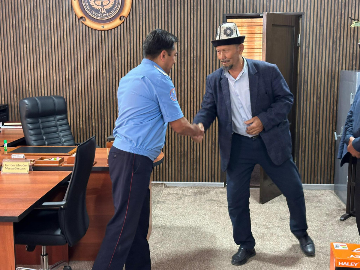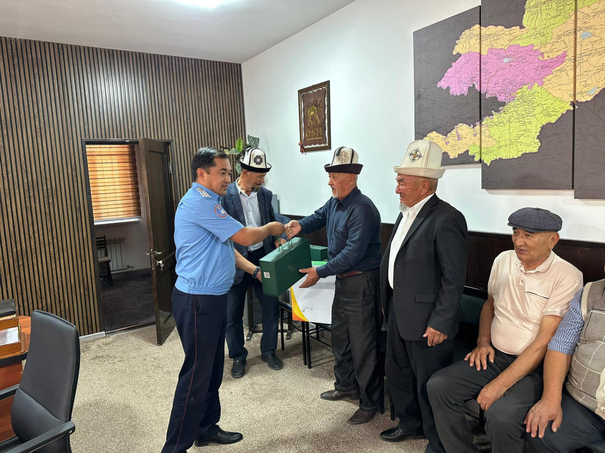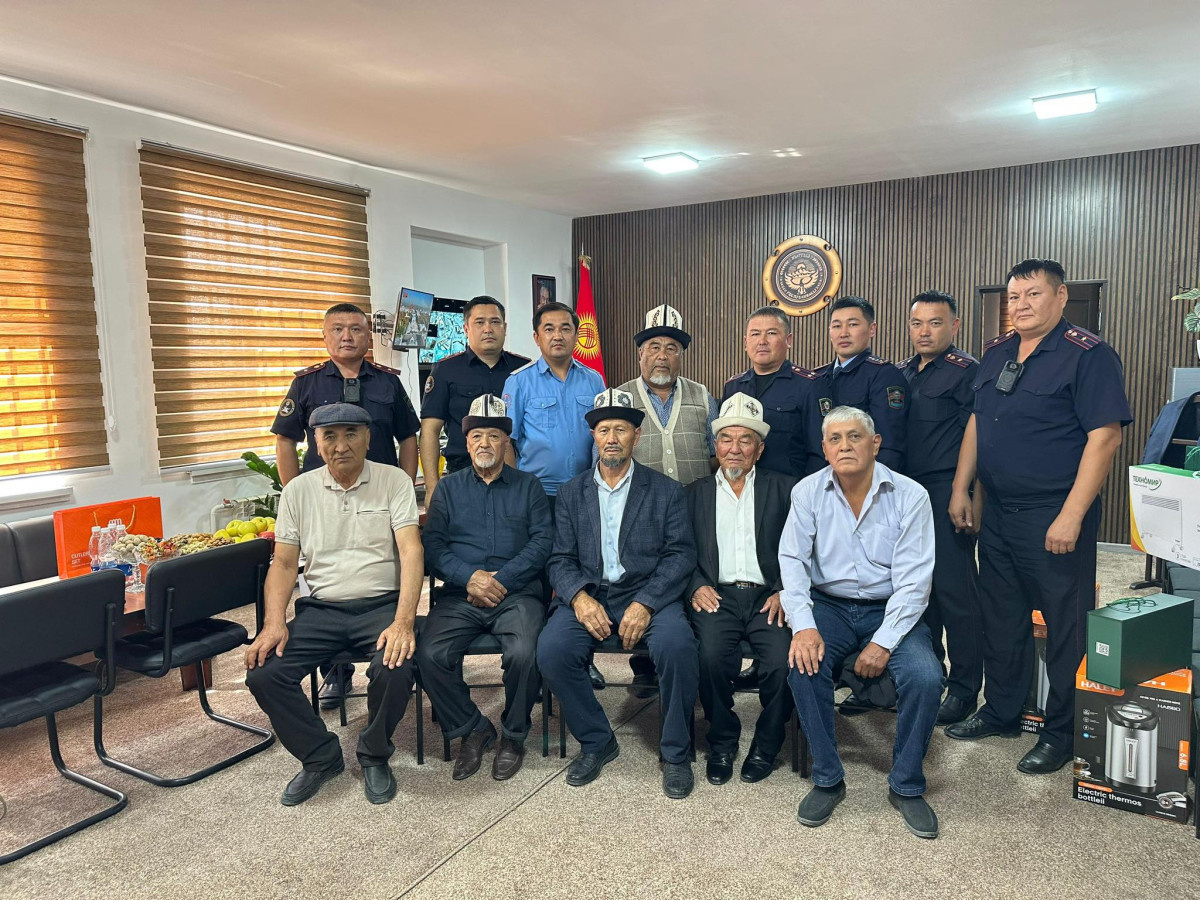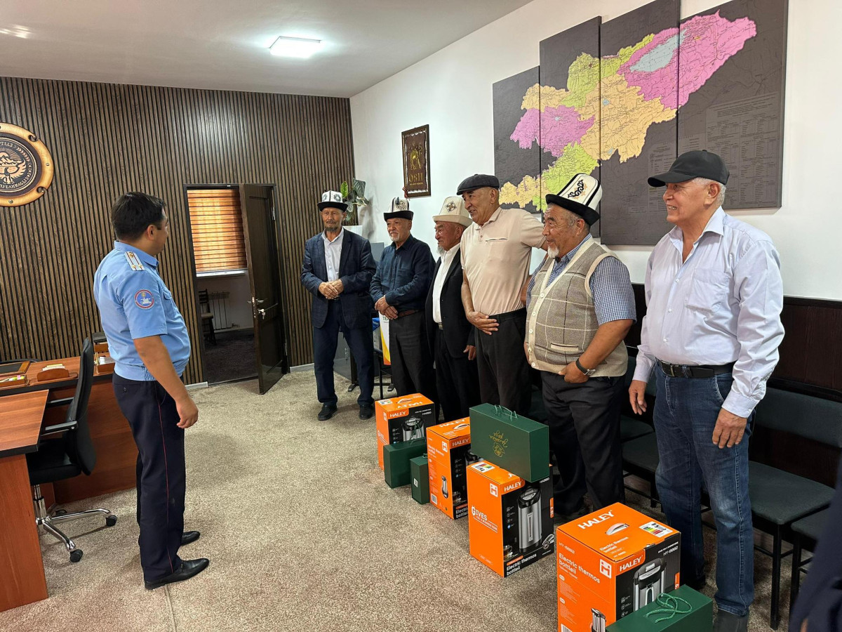 Маалыматка ылайык, иш-чаранын алкагында жаш курагы 70тен ашкан он ардагерге куттуктоолор айтылып, белектер тапшырылды. Ошондой эле кызмат учурунда каза болгон милициянын лейтенанты Баатырбек Тойчиев жана милициянын ага лейтенанты Жалалидин Илязовдун үй-бүлөсүнө барып, алардын жубайларына белек берип, абалдарын сурап, баарлашып кайтышты.