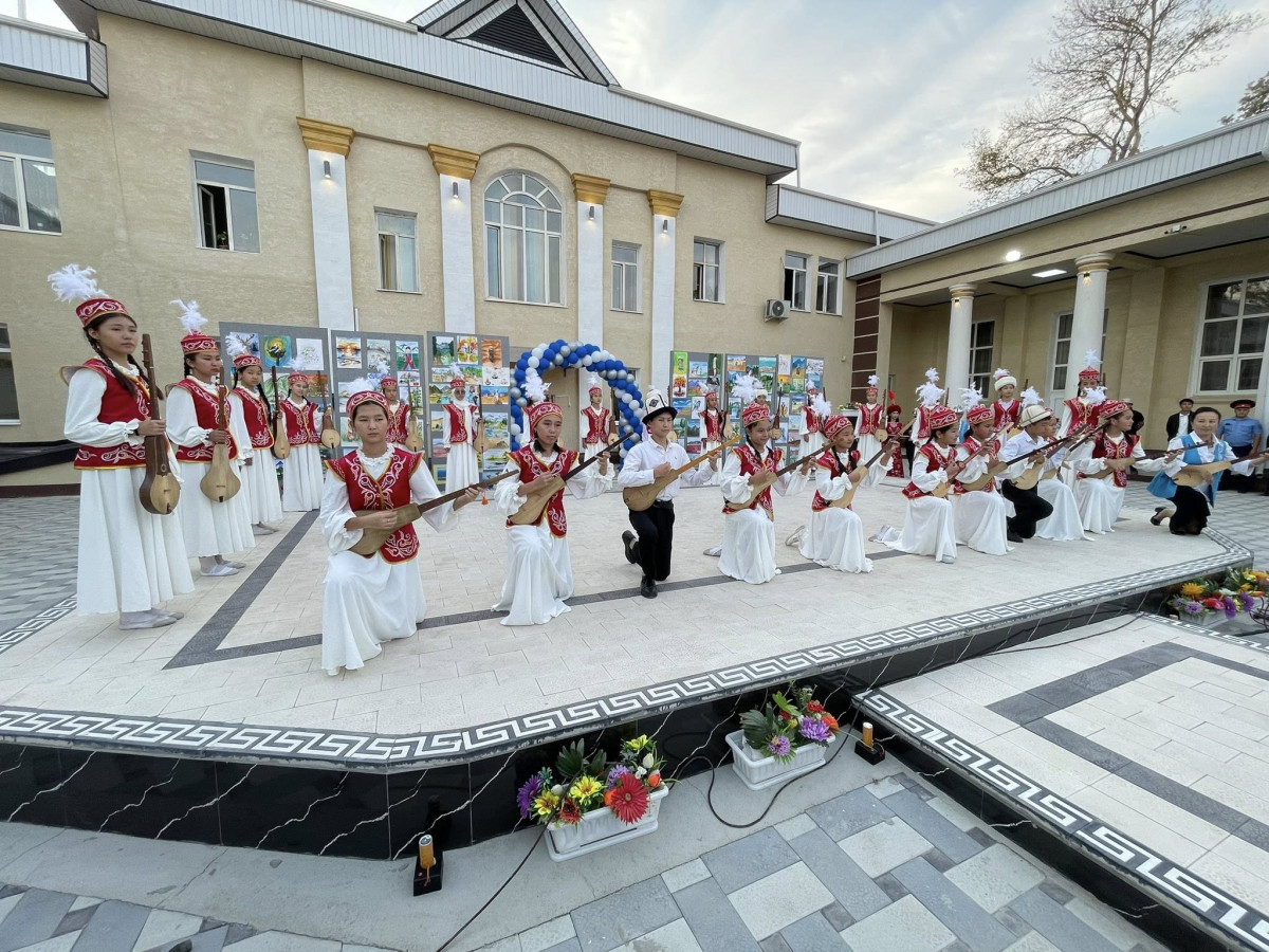 Алгач борбордун чыгармачыл ийримдеринин жаш таланттары тарабынан концерттик программа тартууланды. Шаар мэри амфитеатрдын ачылышы менен куттуктап буга чейин мэрия тарабынан борбордун имараты жана айланасы толук капиталдык оңдоп-түзөөдөн өткөрүлүп берилгенин, бүгүн ачык асман астында концерттик аянт курулуп, пайдаланууга берилип жатканын айтып өттү. Бул сапар да куру кол келбегендигин билдирип, борборго балдар үчүн кичи автобус белекке берди.