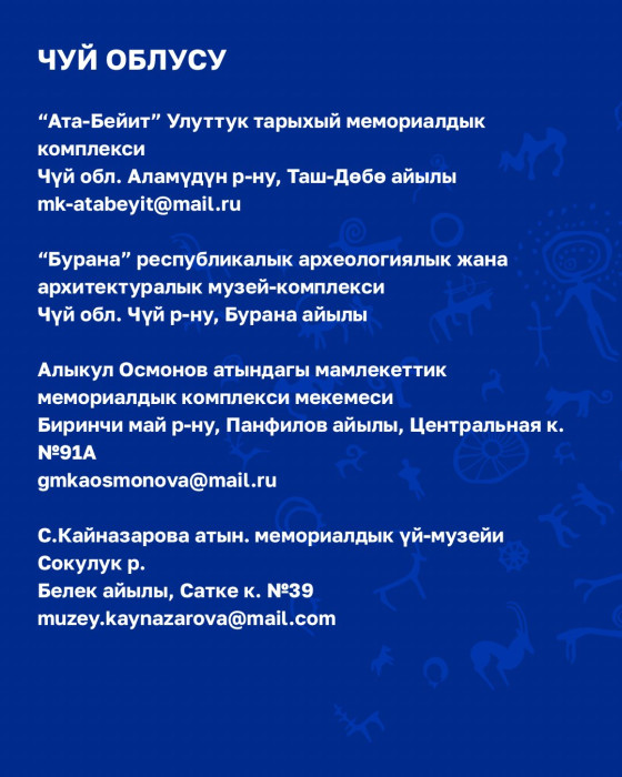 - Кыргыз элинин бай тарыхый жана маданий мурасы менен калкты, өзгөчө жаштарды, терең таанышуу мүмкүнчүлүгү менен камсыз кылуу;
