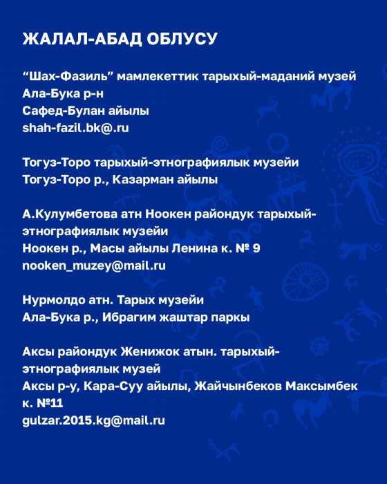 Маалыматка ылайык, мындай иш-чара президенттин "Инсандын руханий, адеп-ахлактык өнүгүүсү жана дене тарбиясы", "Улуттук нарк жөнүндө", ошондой эле "Кыргыз жараны" концепциясын ишке ашыруу алкагында жана өлкөбүздө алгачкы музейдин түзүлгөндүгүнүн 100 жылдыгына карата уюштурулууда.