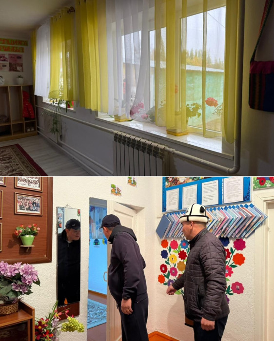 Маалыматка ылайык, министр Талас районуна караштуу Чат-Базар айылындагы жаңы курулуп жаткан 50 орундуу бала бакчанын курулушу менен таанышты.