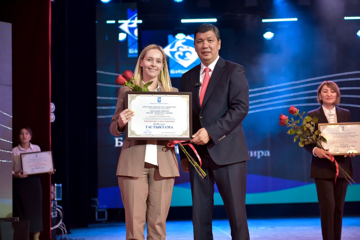 Шаар мэри "Жылдын мыкты мугалими – 2025" сынагынын ар бир номинациясынын жеңүүчүлөрүн куттуктап, сыйлыктарды тапшырды. 1-орунга 100 000 сомдук, 2-орунга 80 000 сомго, 3-орунга ээ болгон мугалимдерге 60 000 сомдук сертификаттар тапшырылды.