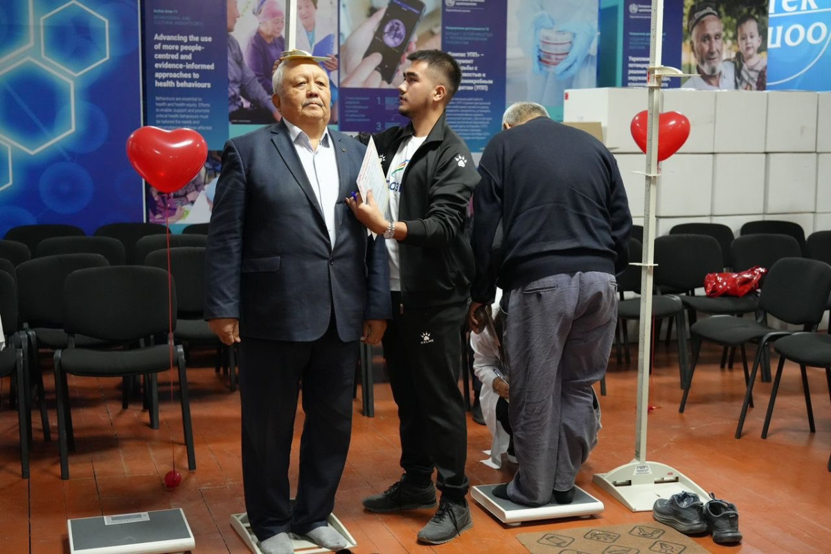 Катышуучулардын кан басымы текшерилип, кардиолог менен кеңешме уюштурулду.