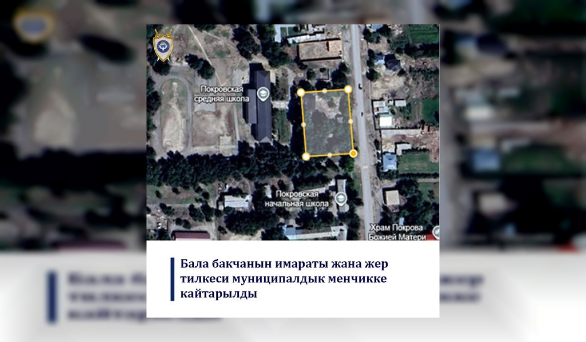 Таластын Манас районундагы Семетей айылында жайгашкан эски №5 бала бакчанын имараты жана ага тиешелүү болгон 0,35 гектар жер тилкеси мамлекетке кайтарылды. Бул тууралуу Башкы прокуратура билдирди.