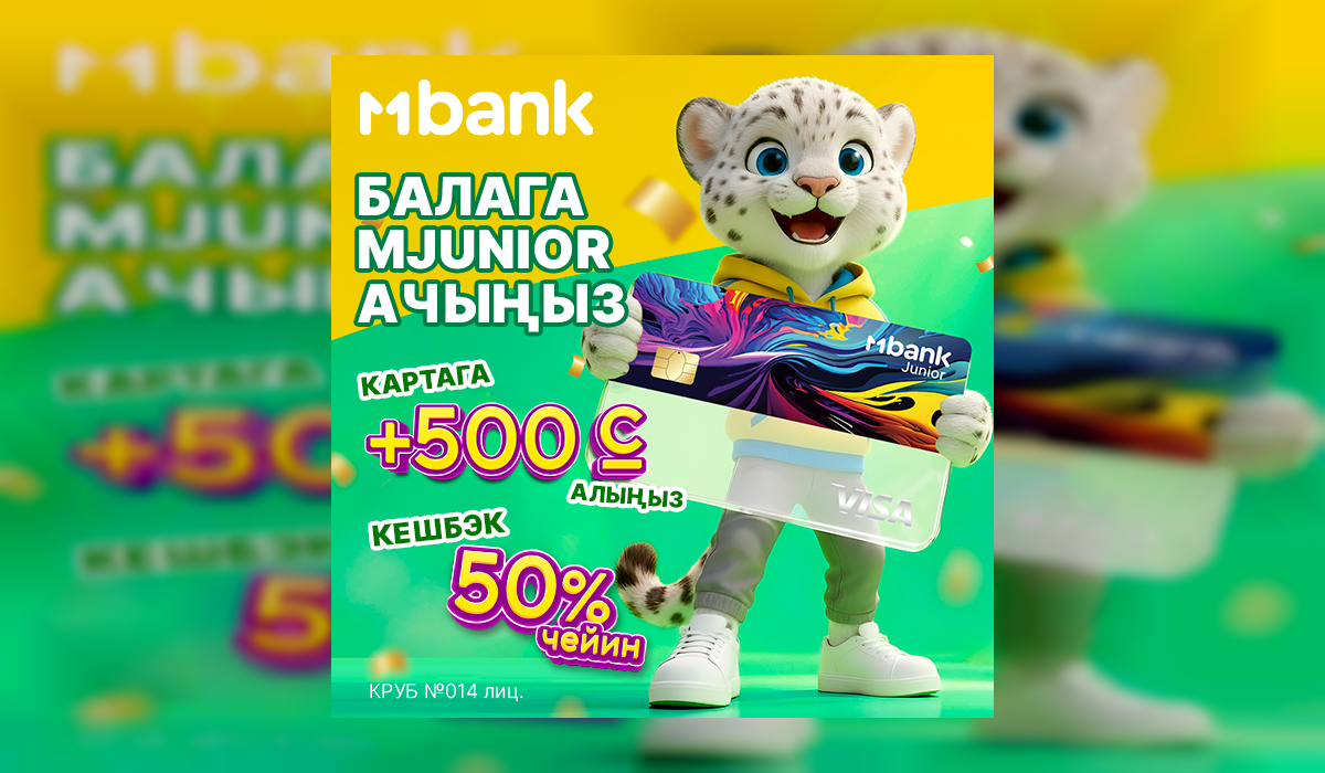 MBANK балаңыздын алгачкы каржылык кадамын дагы да пайдалуу кылат! MBANK’тан балдар картасын — MJunior ачыңыз жана балаңыз 500 сом бонуска ээ болуп, мындан тышкары сатып алууларга 50% чейин кешбэк ала алат!