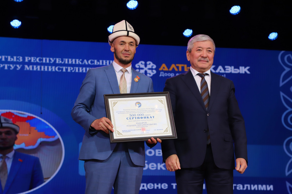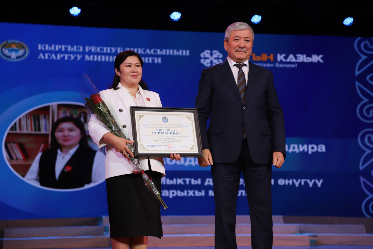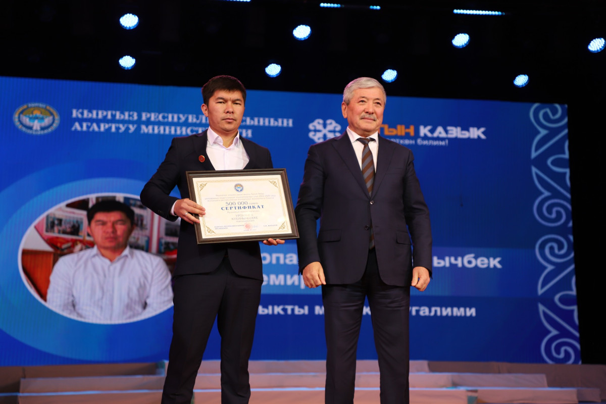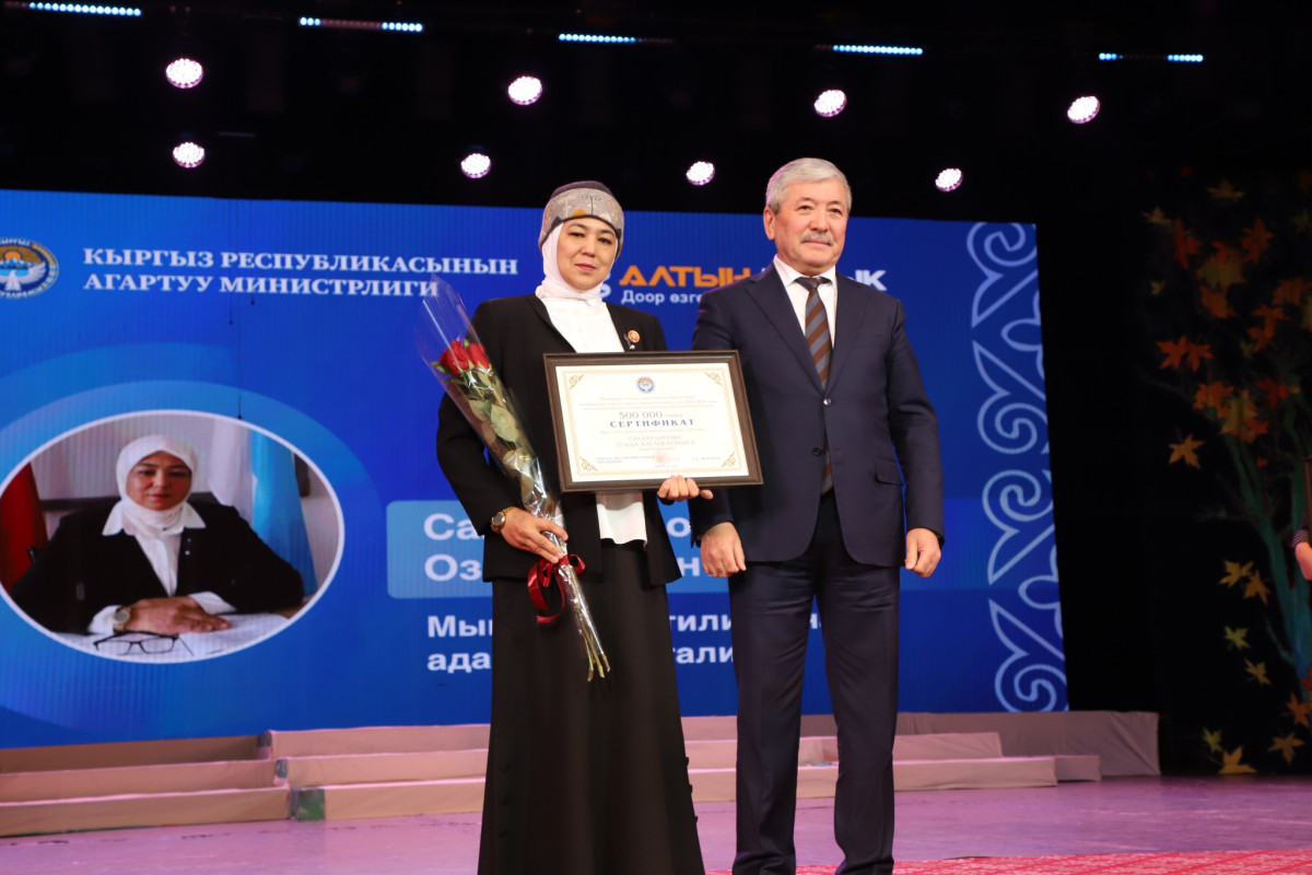 Ошондой эле республикалык сынакта ар бир предмет боюнча жеңүүчү аталган 10 мугалимге президенттин фондунан 500 миң сомдон акчалай сыйлык тапшырды.