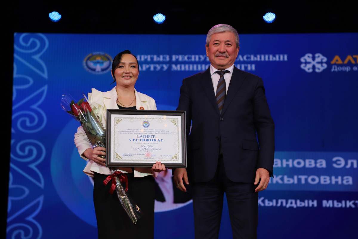 Элзат Асановага Бишкек шаарынан бир бөлмөлүү батирге сертификат тапшырды. Бул тууралуу Агартуу минисрлигинен билдиришти.