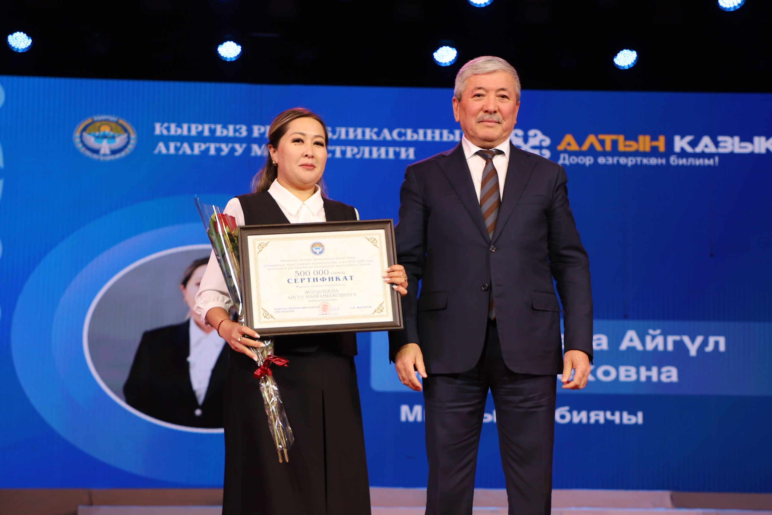 Ошондой эле бүгүн "Жылдын мыкты мугалими" сынагынын жеңүүчүлөрүнө да сыйлыктар тапшырылды.