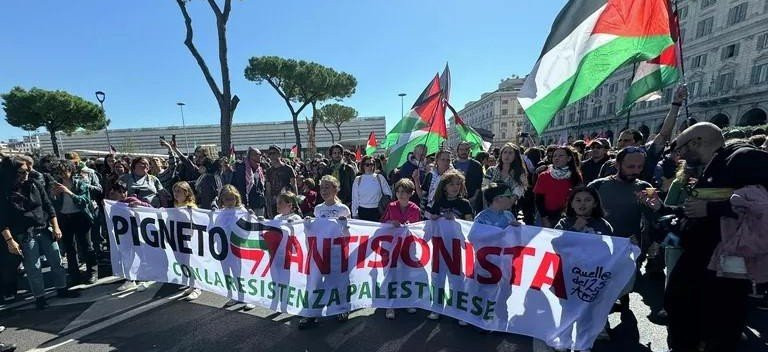 Катышуучулар Палестина желектерин желбиретип, Италия өкмөтүнүн башчысы Жорджиа Мелонинин отставкасын талап кылышты.