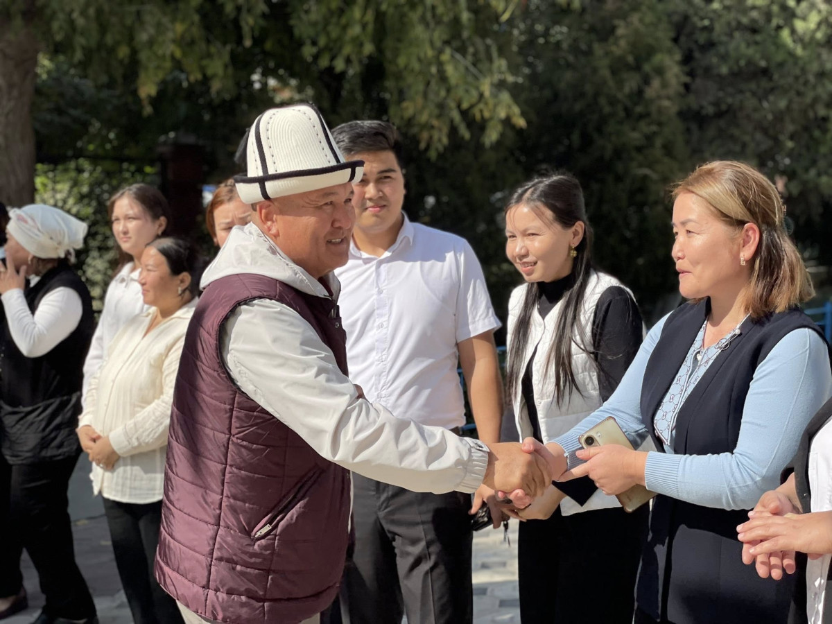 Мэр кыдыруусун Гагарин мектебинде улантып, мугалимдерди майрамы менен куттуктады.
