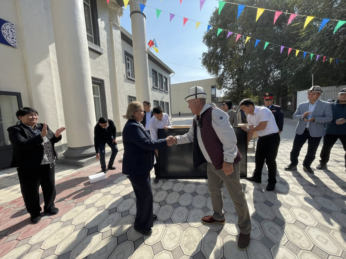 Аталган эки мектепке мугалимдер күнүнө карата президенттин атынан интерактивдүү доскаларды тапшырды. Ошондой эле жаңы парта, отургучтар берилди.