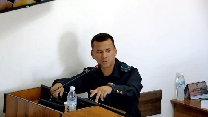 Кесиптешинин пикирин колдогон Нурзат Токтосунова Таалайбековдон социалдык тармактарга видео чыгаруусу канчалык натыйжа берип жатканын сурады. Таалайбеков сөзүн орус тилинде баштаганда, Токтосунова андан кыргыз тилинде жооп берүүсүн талап кылды. Бирок Таалайбеков орус тилинде сүйлөө да өз укугу экенин айтты. Токтосунова ал отчёт берүүгө даяр эмес экендигин белгиледи.