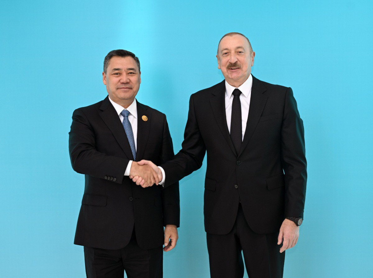 Иш-чаранын алдында мамлекет башчысын Азербайжандын президенти Ильхам Алиев тосуп алды.