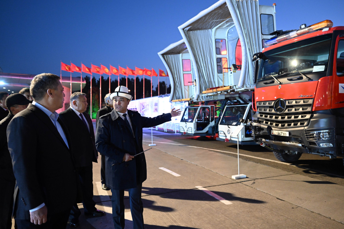 Маалымдагандай, мамлекет башчысына "Кыргызстан аэропорттору" ААКсынын башкармалыгынын төрагасы Манас Самидинов аба майданды реконструкциялоо пландары менен тааныштырган. Президент ошондой эле 2023-жылдан бери сатылып алынган жаңы атайын техникасы менен таанышып чыккан.