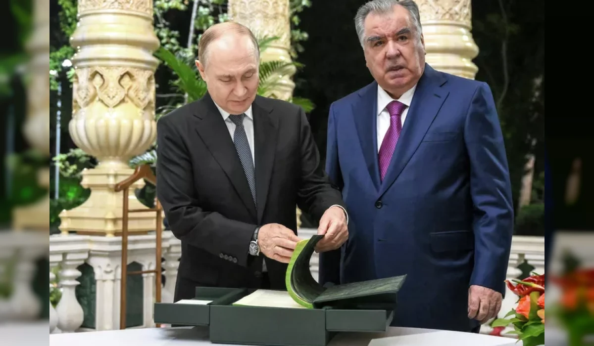 Орусиянын президенти Владимир Путин Душанбеге болгон иш сапарында Тажикстандын лидери Эмомали Рахмонго "Тажиктер" аталышындагы китеп жана "Тажик достору" картинасын белек кылды. Бул тууралуу Орусия басылмалары жазышты.