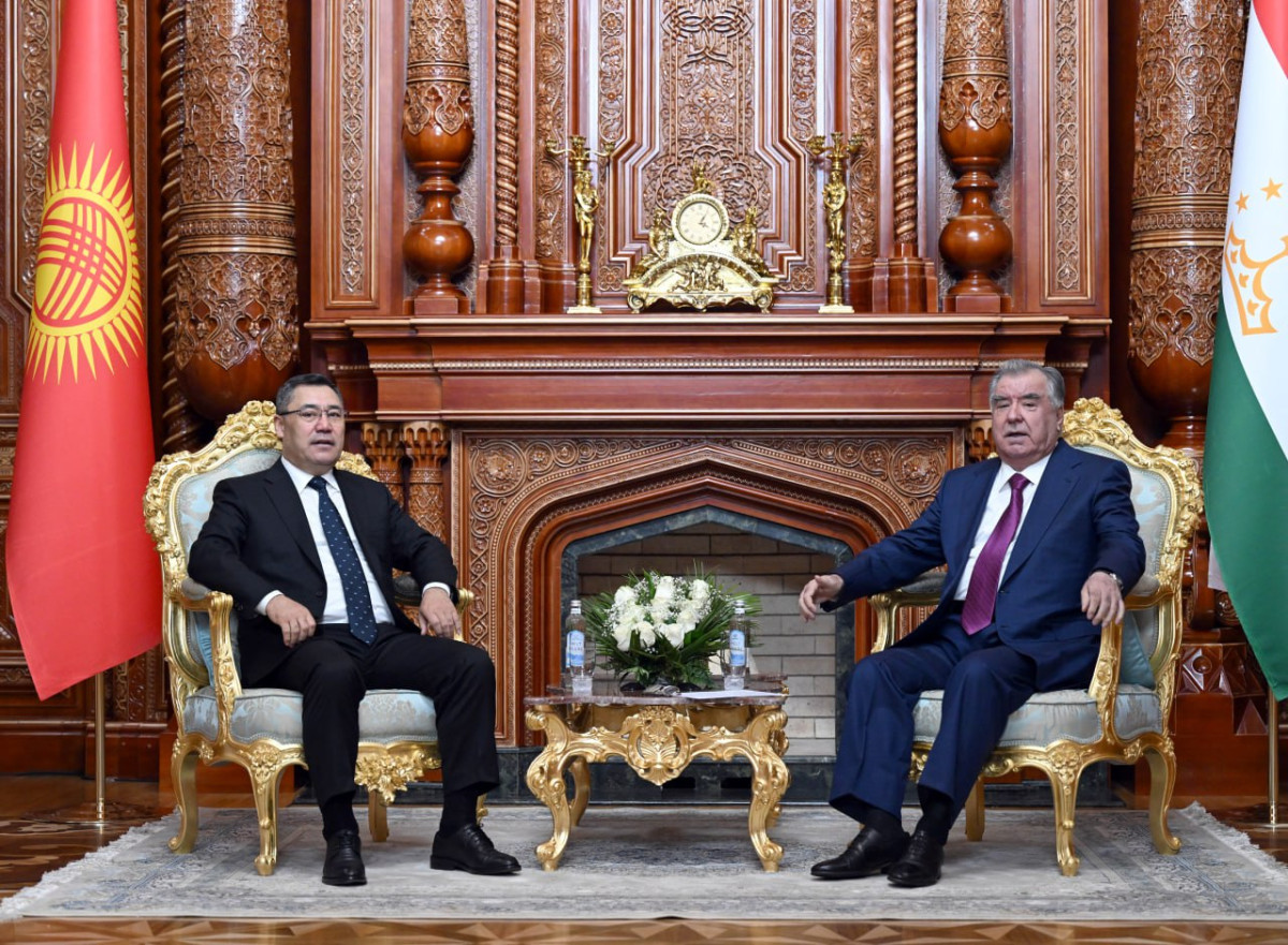 Бүгүн, 9-октябрда президент Садыр Жапаров Тажикстанга болгон иш сапарынын алкагында Душанбе шаарында президент Эмомали Рахмон менен жолугушту.