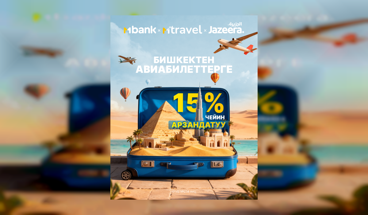Эми сиз авиакомпаниянын тарифинен 15% чейин арзандатуу менен билет сатып ала аласыз!