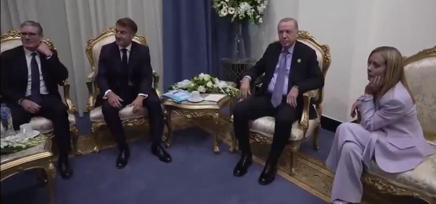 Түркиянын президенти Режеп Тайып Эрдоган Египеттин Шарм-эш-Шейх шаарында өтүп жаткан Газа маселесине арналган эл аралык тынчтык саммитинде Италиянын премьер-министри Жоржа Мелониге тамаша иретинде кеңешин айтты.
