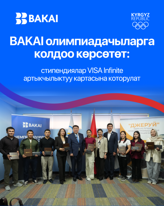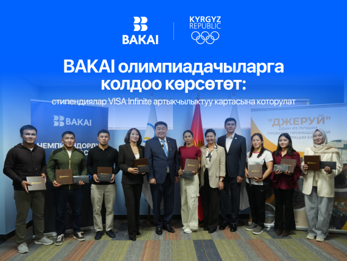 Үч жыл аралыгында BAKAI КР УОК менен биргеликте спортчуларга ыңгайлуу каржылык шарттарды түзүп олимпиадалык стипендия алгандарга колдоо көрсөтүү программасын ишке ашырып келүүдө. Ар бир стипендиат BAKAI’дан VISA Infinite артыкчылыктуу картасын акысыз алат. Стипендиянын бардык төлөмдөрү BAKAI’дын VISA Infinite артыкчылыктуу картасына которулат. Бул программанын колдонуучуларына артыкчылыктуу тейлөө шарттарын жана банктын кеңейтилген мүмкүнчүлүктөрүн көрүүгө шарт түзөт.