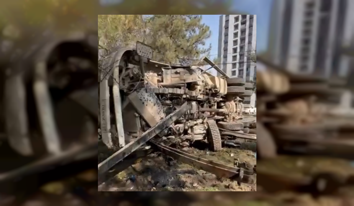Бишкектеги Учар кичи районунунда оор жүк ташуучу унаа оодарылып кетти (видео)