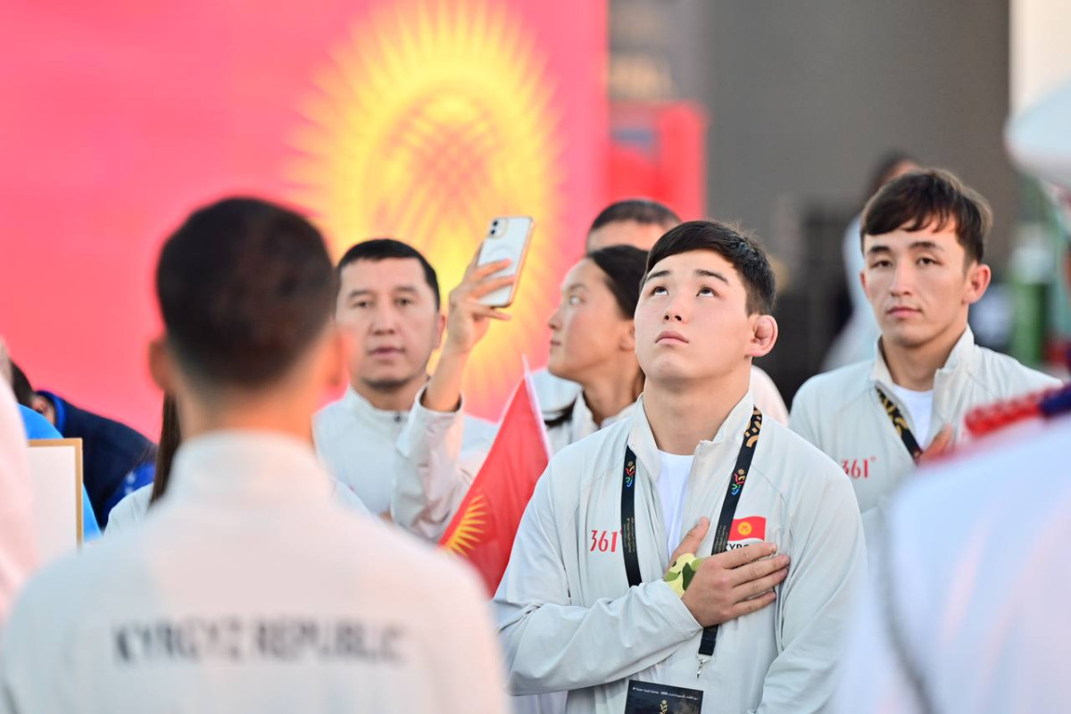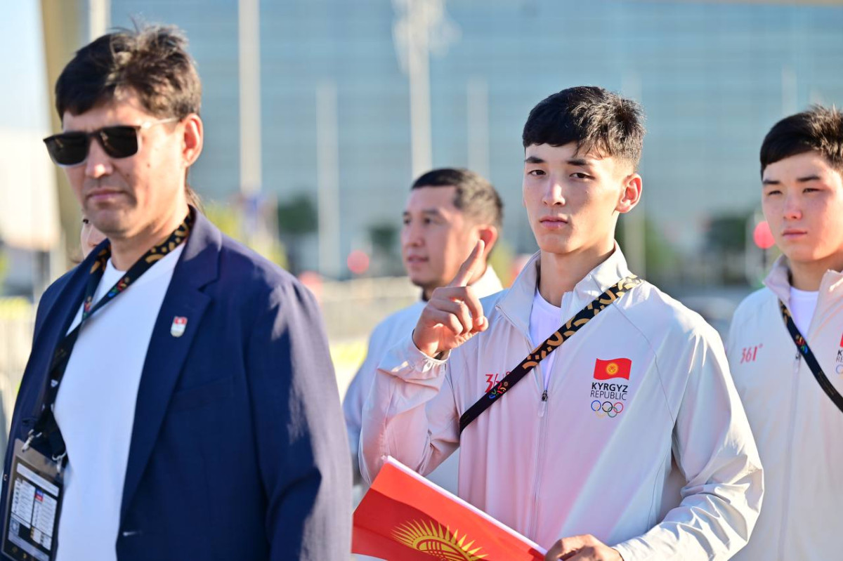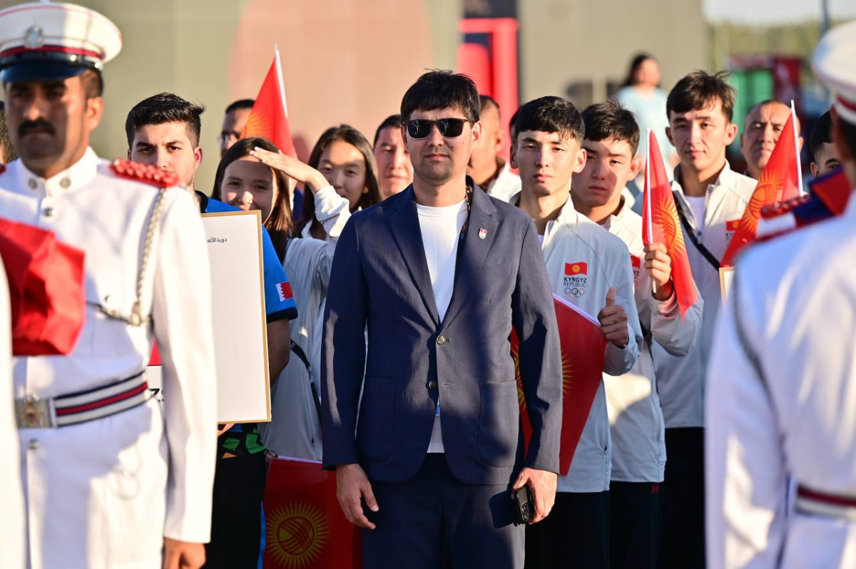 Манама шаарында (Бахрейн Падышалыгы) өтүп жаткан III Өспүрүмдөр Азия оюндарында Кыргызстандын делегациясынын мүчөлөрү командаларды тосуп алуу жана туу көтөрүү аземине катышты. Бул тууралуу Дене тарбия жана спорт мамлекеттик агенттигинен билдиришти.