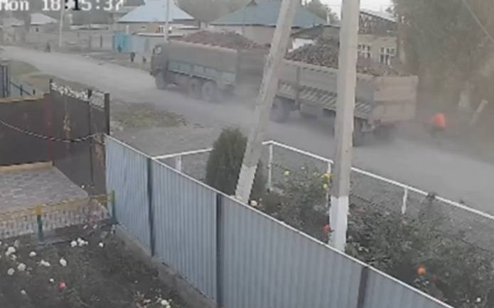 Кара-Балтада окуучу балдар оор жүк ташуучу унаага тебеленип каза болгон кырсыктын видеосу тарады. Аталган окуянын видеосу турак үйдүн байкоочу камерасына түшүп калган.