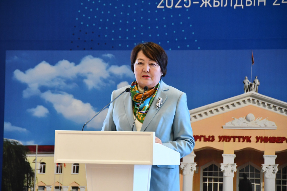 "Сиздердин окуу жайдын тарыхы - бул кыргыз мамлекеттүүлүгүнүн жана интеллектуалдык элитанын калыптанышынын барагы. 1925-жылы агартуу институту катары негизделген бул окуу жай педагогикалык кадрларды даярдоодон тартып, улуттук статусу бар, өлкөнүн алдыңкы илимий-билим берүү борборуна айланганга чейинки татыктуу жолду басып өттү. Бул жылдар аралыгында миңдеген адистерди тарбиялап, кыргыз коомунун, илиминин, маданиятынын жана мамлекеттик кызматтын өнүгүшүнө баа жеткис салым кошту", - деди Догдуркүл Кендирбаева.